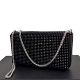 Classic and elegant with a bit of sparkle. Perfectly sized black diamond look clutch made with high quality genuine leather. Comes with detachable silver chain strap and leather strap to mix and match with your style. Perfect for date night or to spice up an outfit.